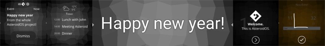 After nearly 1800 commits and 20000 IRC messages exchanged (bot excluded), it is now high time to highlight all the hard work that has been achieved by the AsteroidOS community in 2017 and what's remaining for 2018.